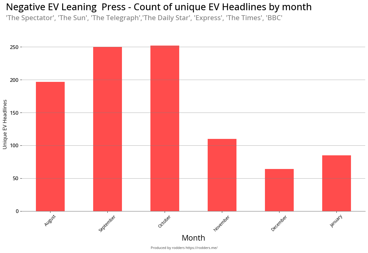 This study analysed the sentiment of mainstream media headlines towards electric vehicles (EVs) from August 2023 to January 2024, capturing a dataset of 1,976,938 observations across ten prominent UK publications, including The Sun, The Daily Mail, The Telegraph, The Express, The Times, The BBC, The Independent, The Spectator, The Economist and The Daily Star Media outlets.