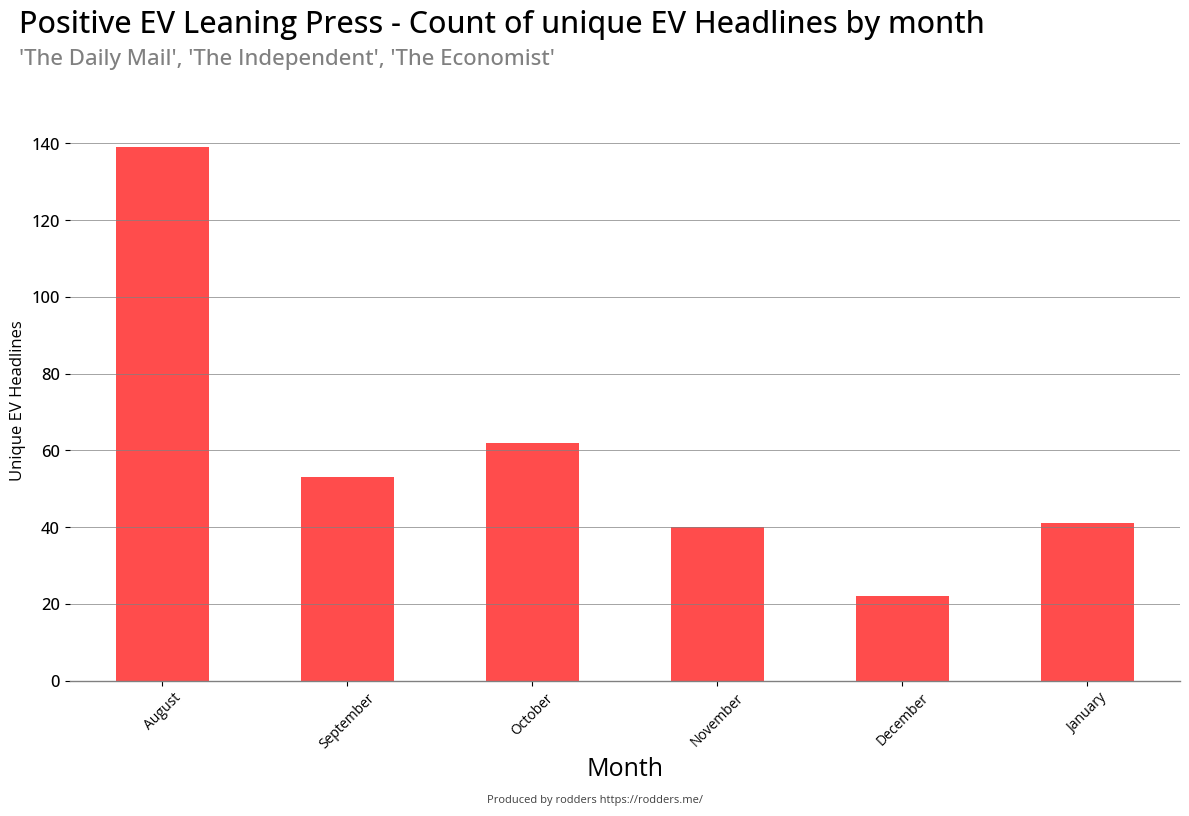 With the growing body of evidence against the majority of publishers acting neutrally towards Electric Vehicles, it would be simple to draw a conclusion from the visualisation that EV headlines are retained in search results for a longer period than general news, however it would not be fair to compare the statistics.