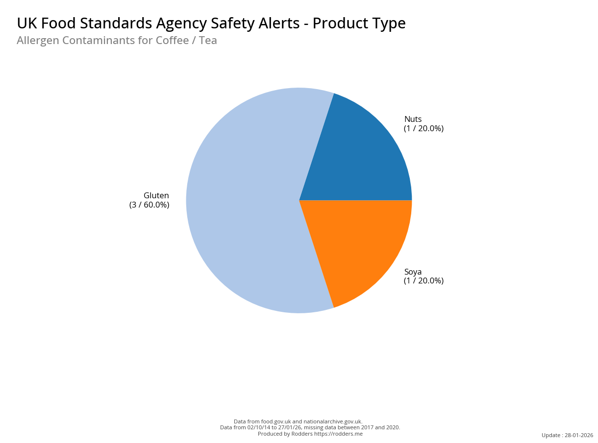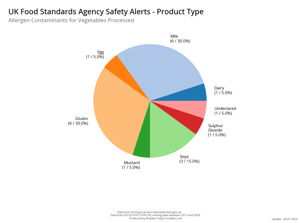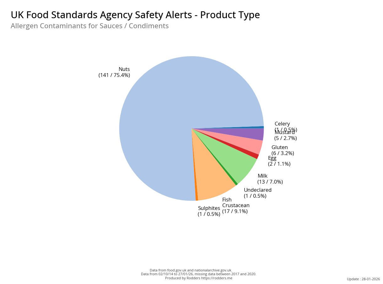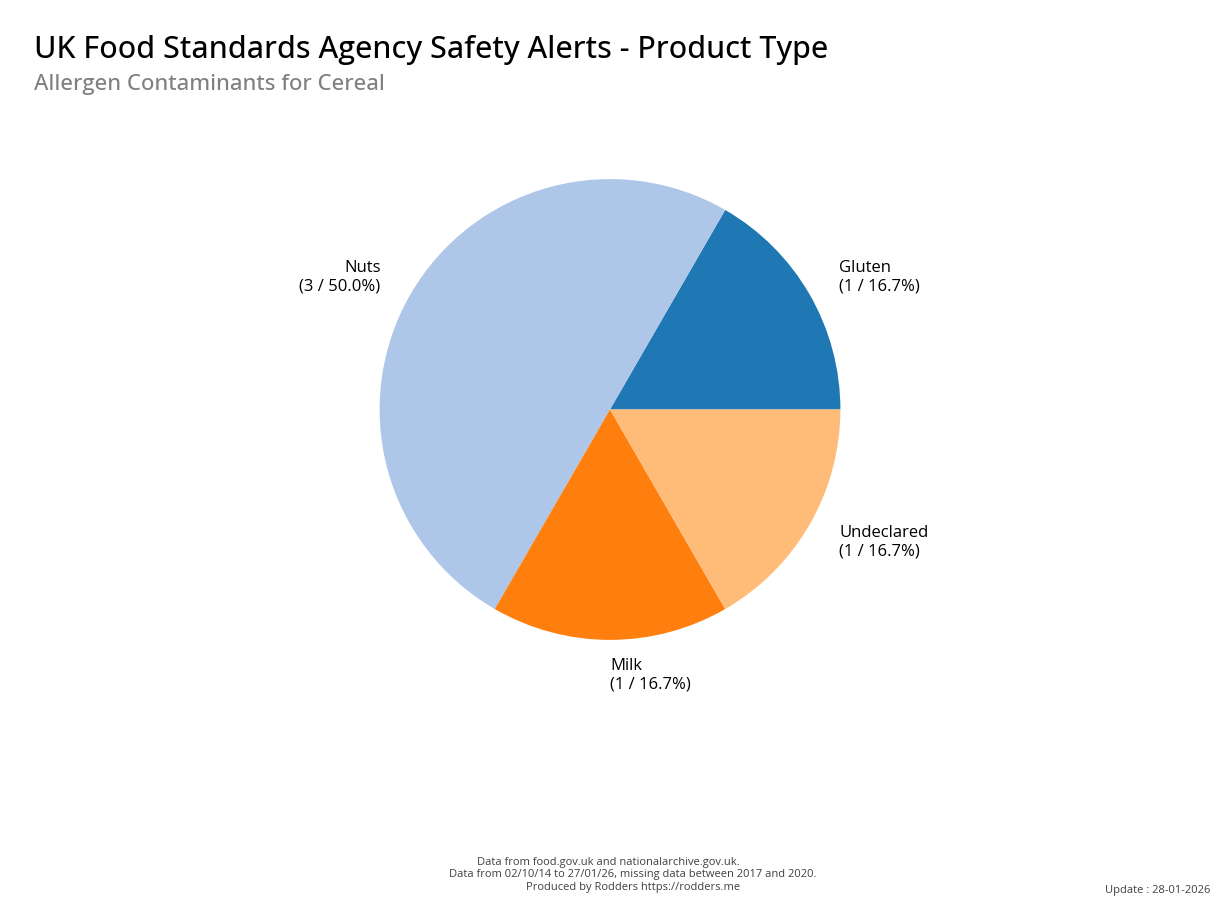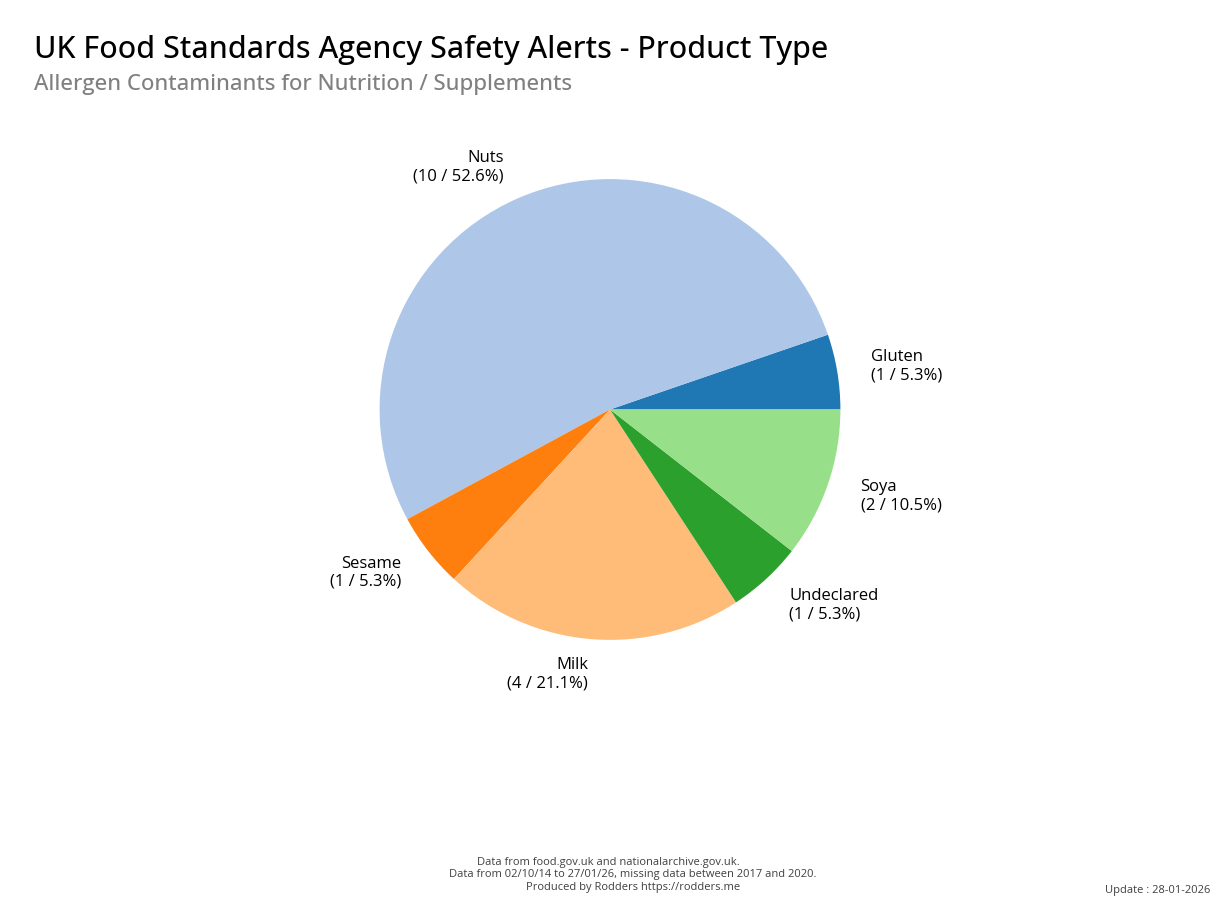 This section of the analysis focuses on a comprehensive review of food safety alerts issued by the FSA with a specific emphasis on allergenic substances such as peanuts, tree nuts, milk, eggs, fish, shellfish, soy, and wheat. By examining these data, this study aims to assess the effectiveness of the current alert system in detecting and responding to outbreaks, identify trends and patterns in the types of allergens involved, and provide insights that can inform strategies for improving food safety and reducing public health risks.