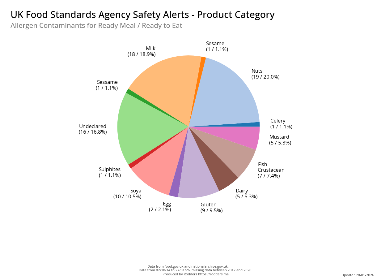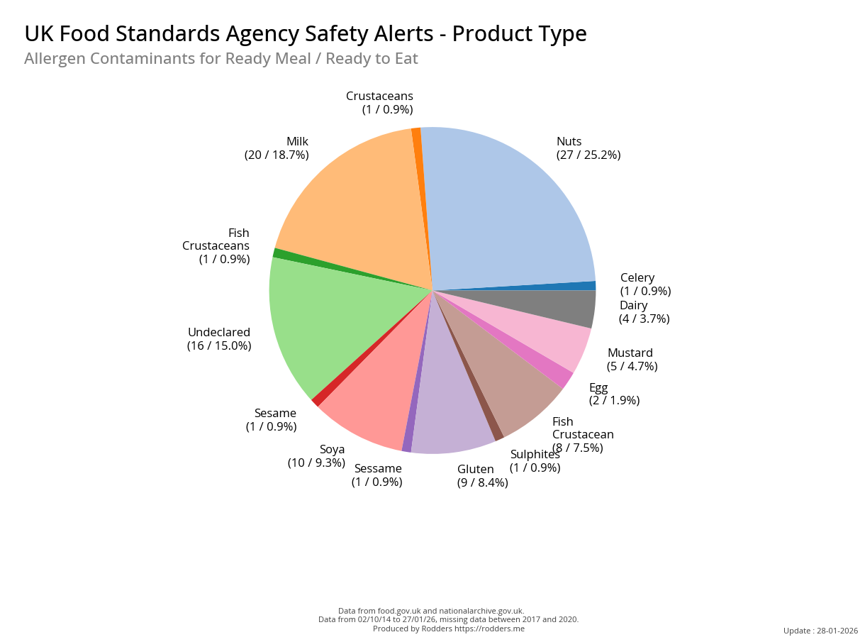 The most common allergens : Milk, Undeclared Allergens, Nuts, Gluten, Soya, Egg, Mustard account for 89% of all safety alerts issued for allergens.