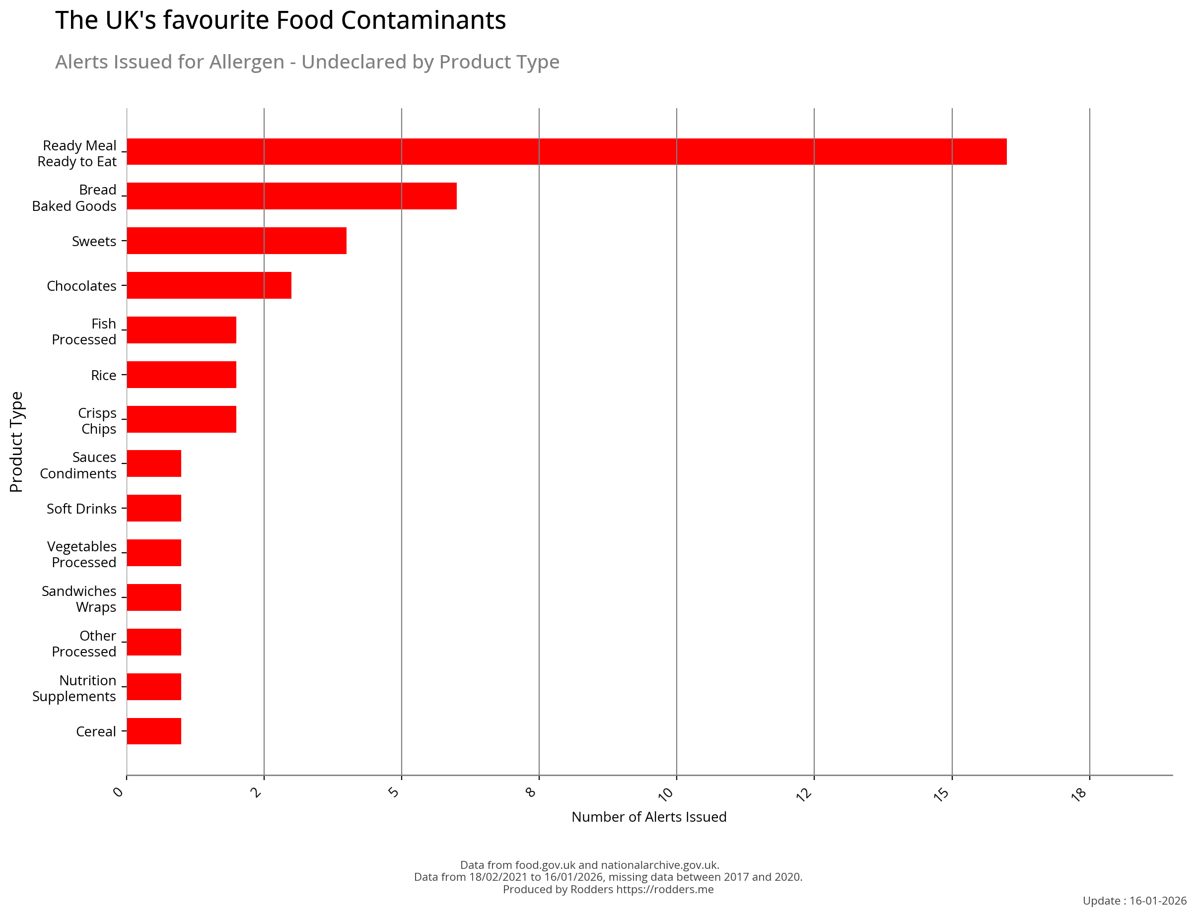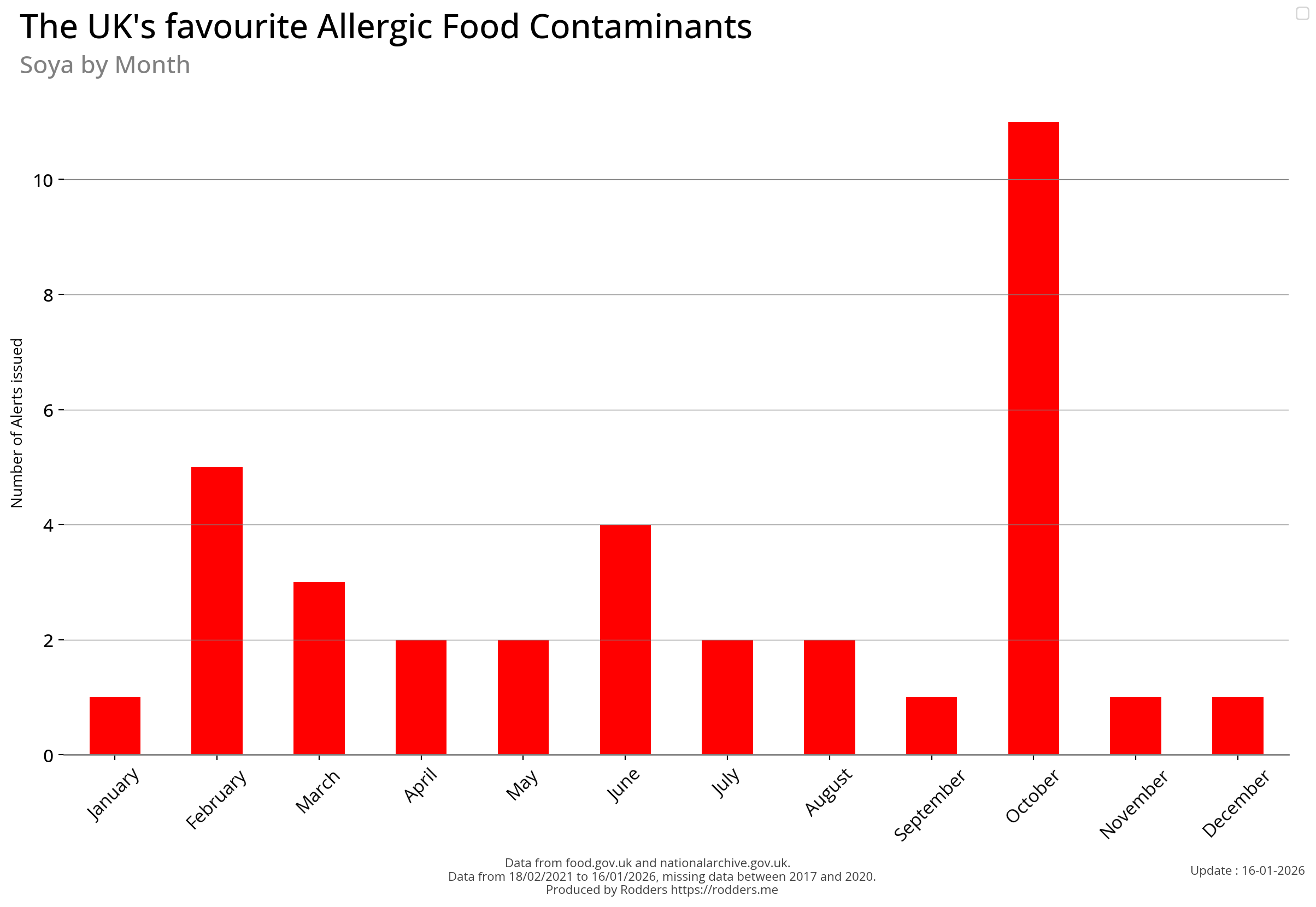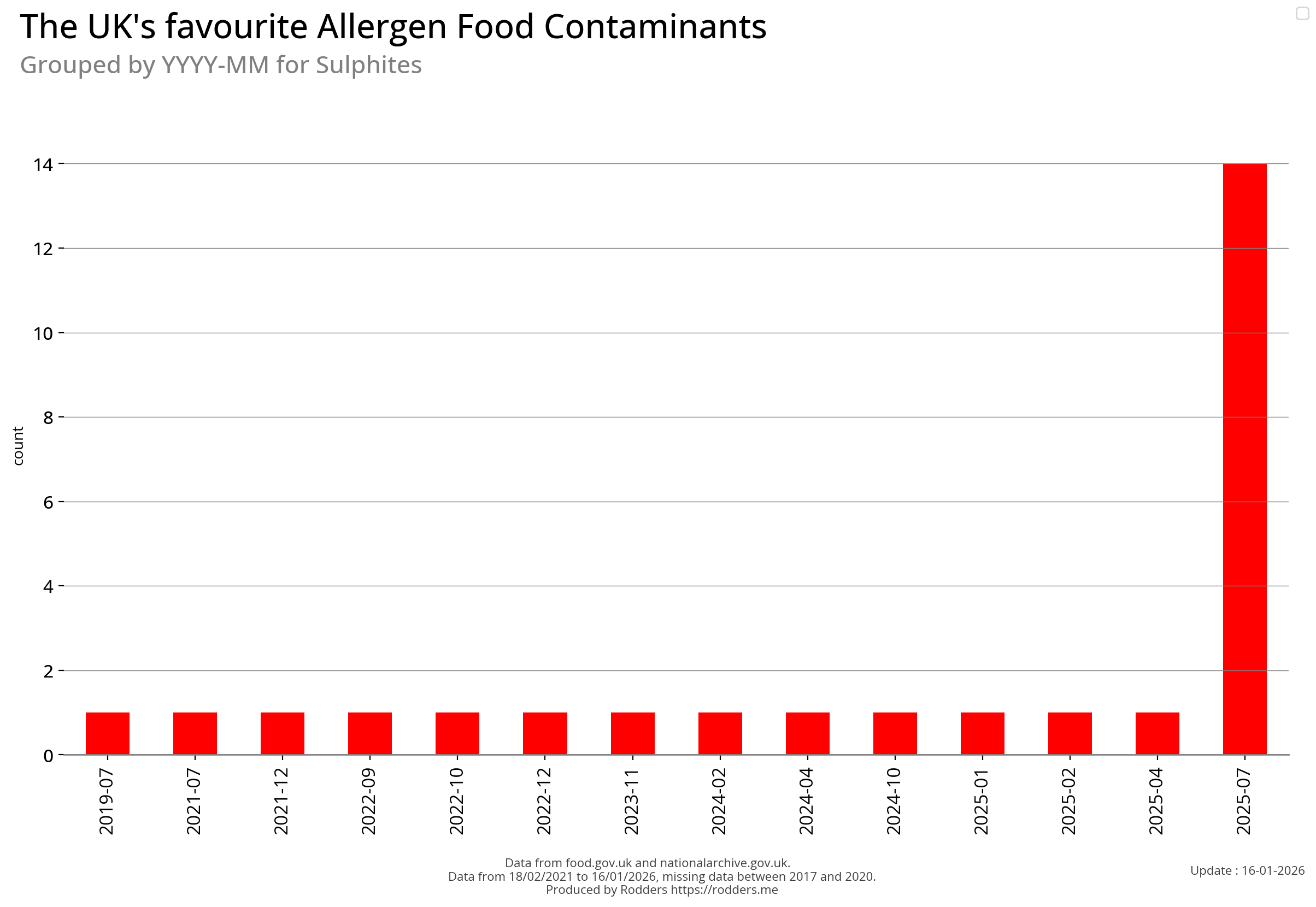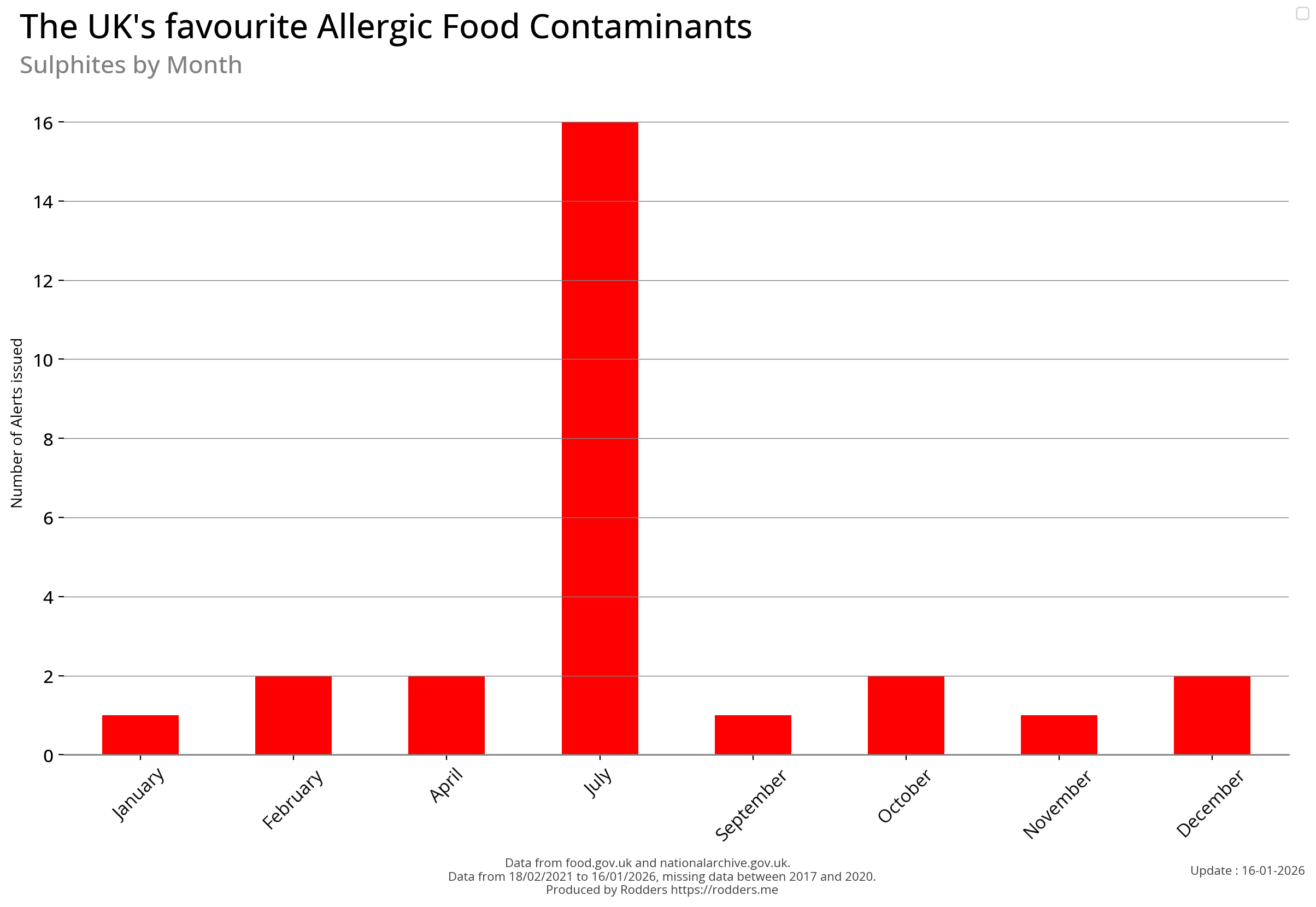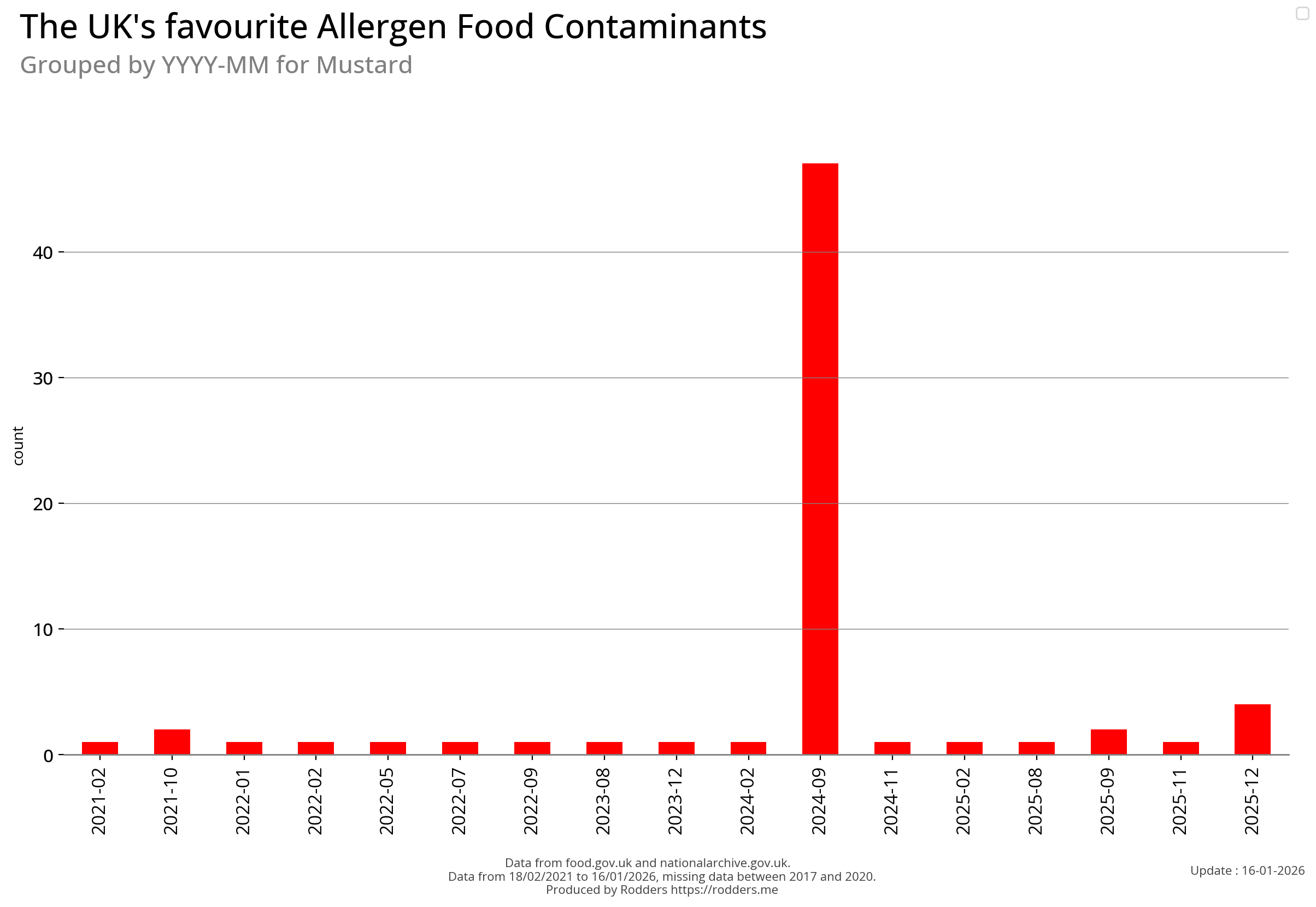 Note, data missing from 2017 to 2002. It appears that prior to 2017 Allergen Alerts were not being issued and with the missing data from 2017 to 2020, there are a lot less data points to visualise for Allergens compared to other Food Safety Alerts.