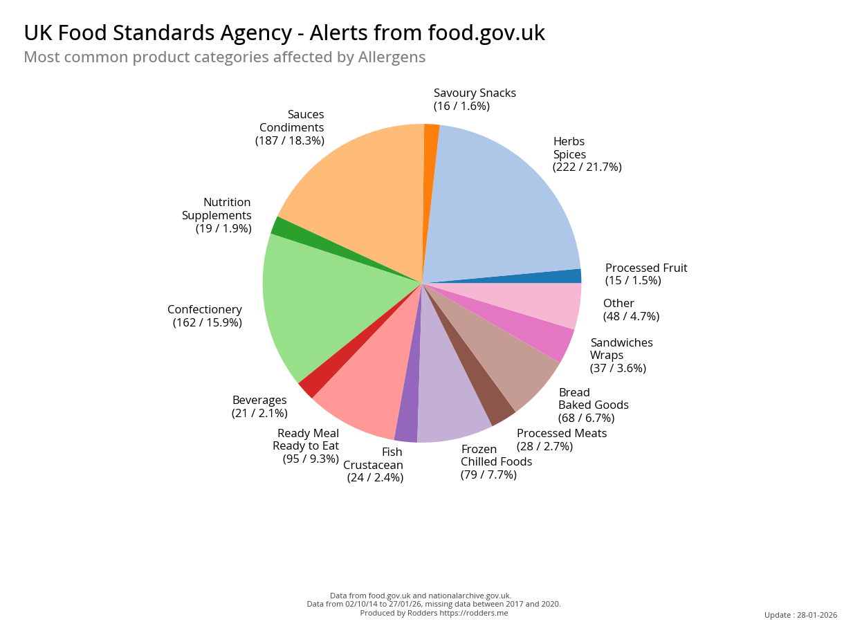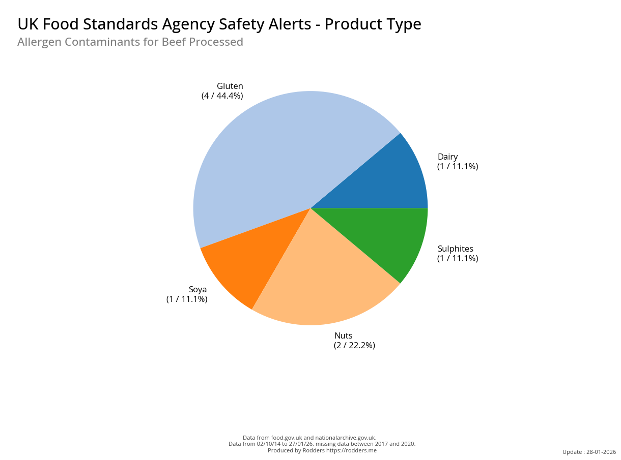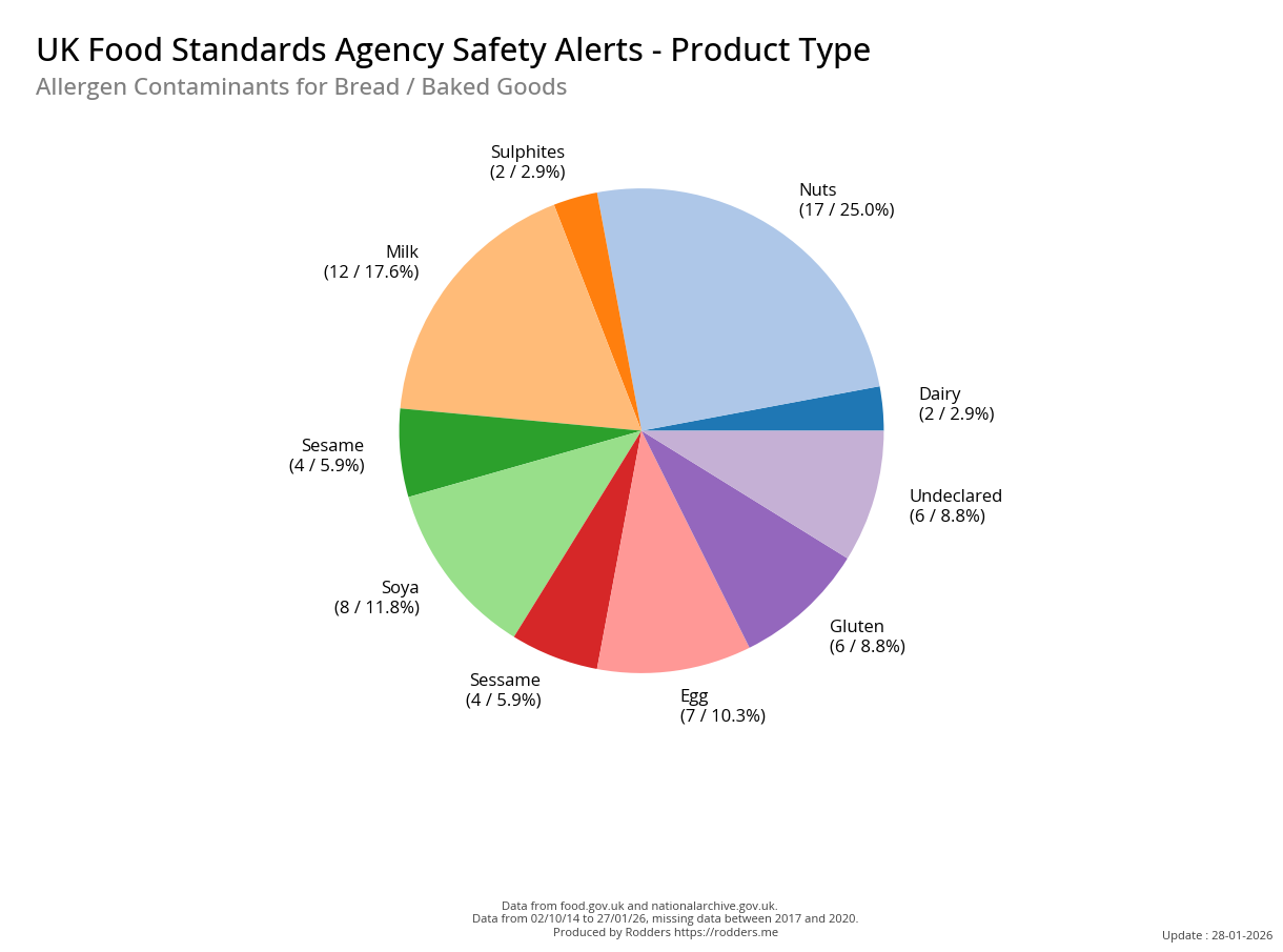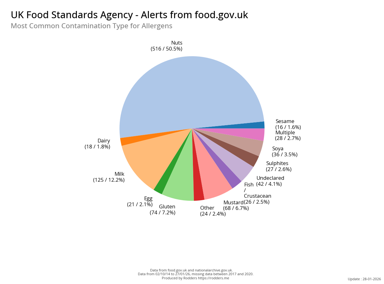 Safety alerts for Allergenic contaminations account for 33% of all safety alerts issued by the FSA
