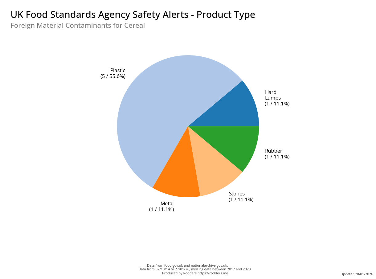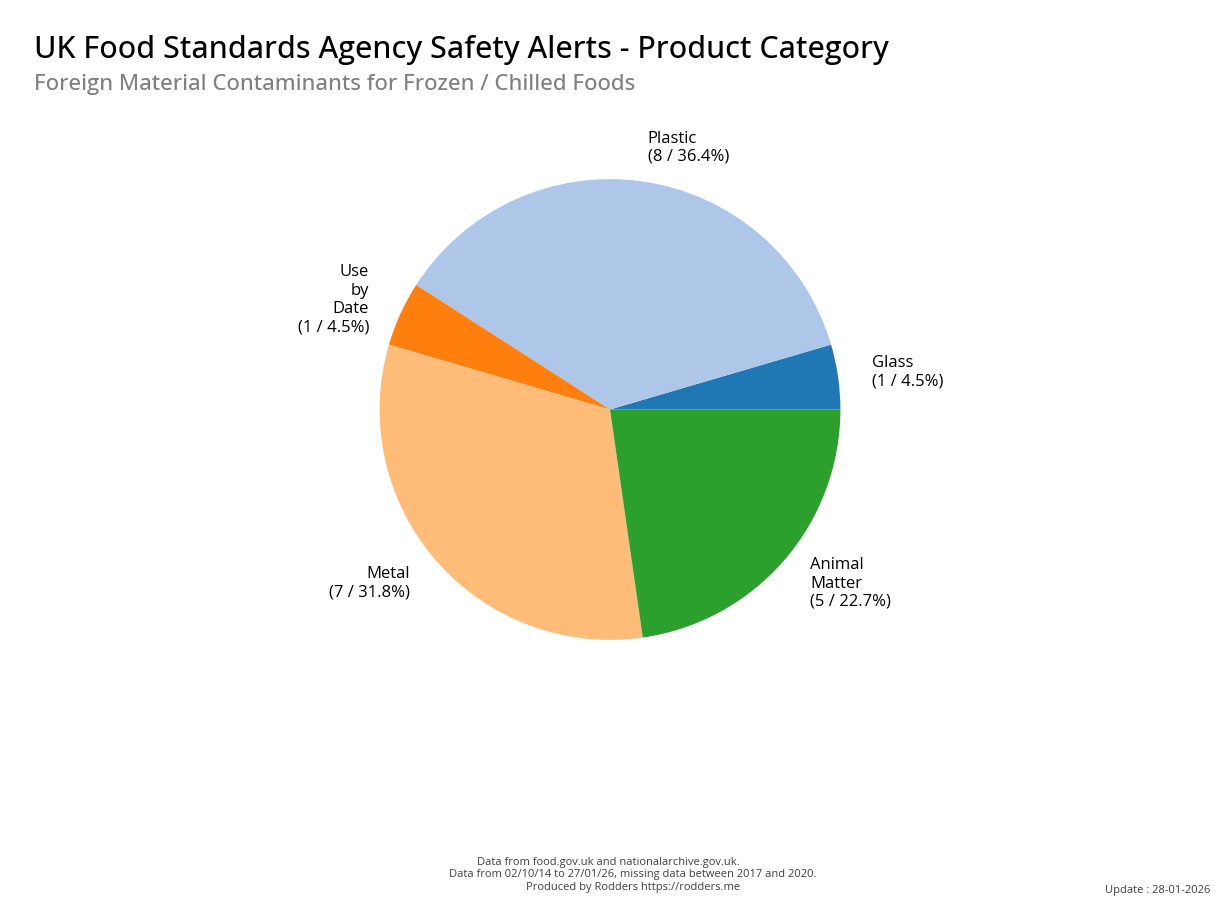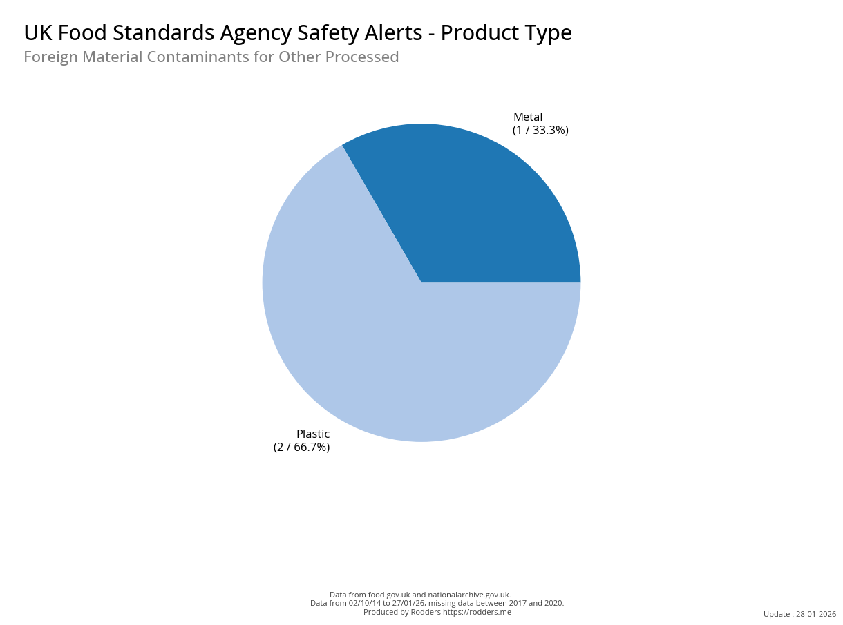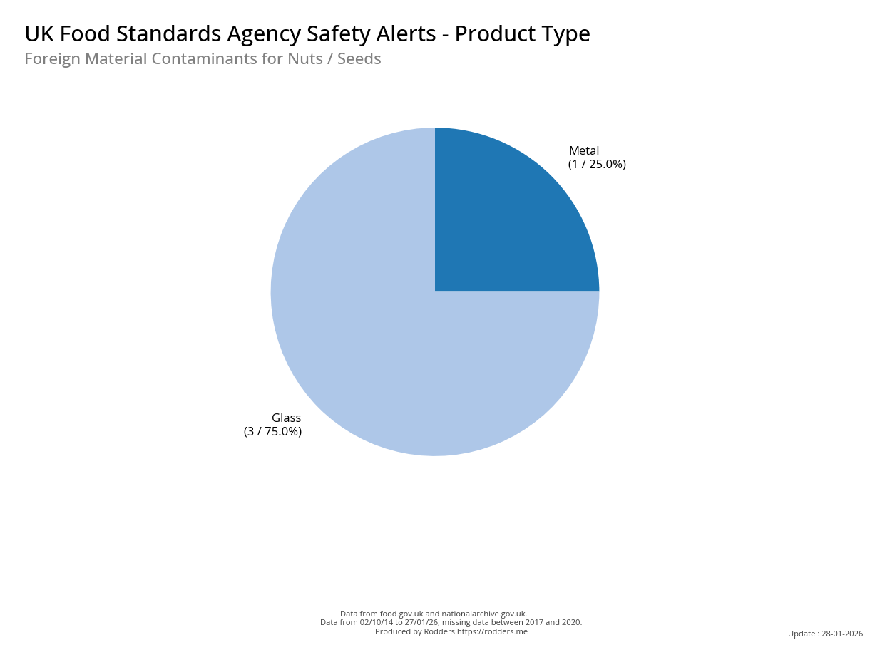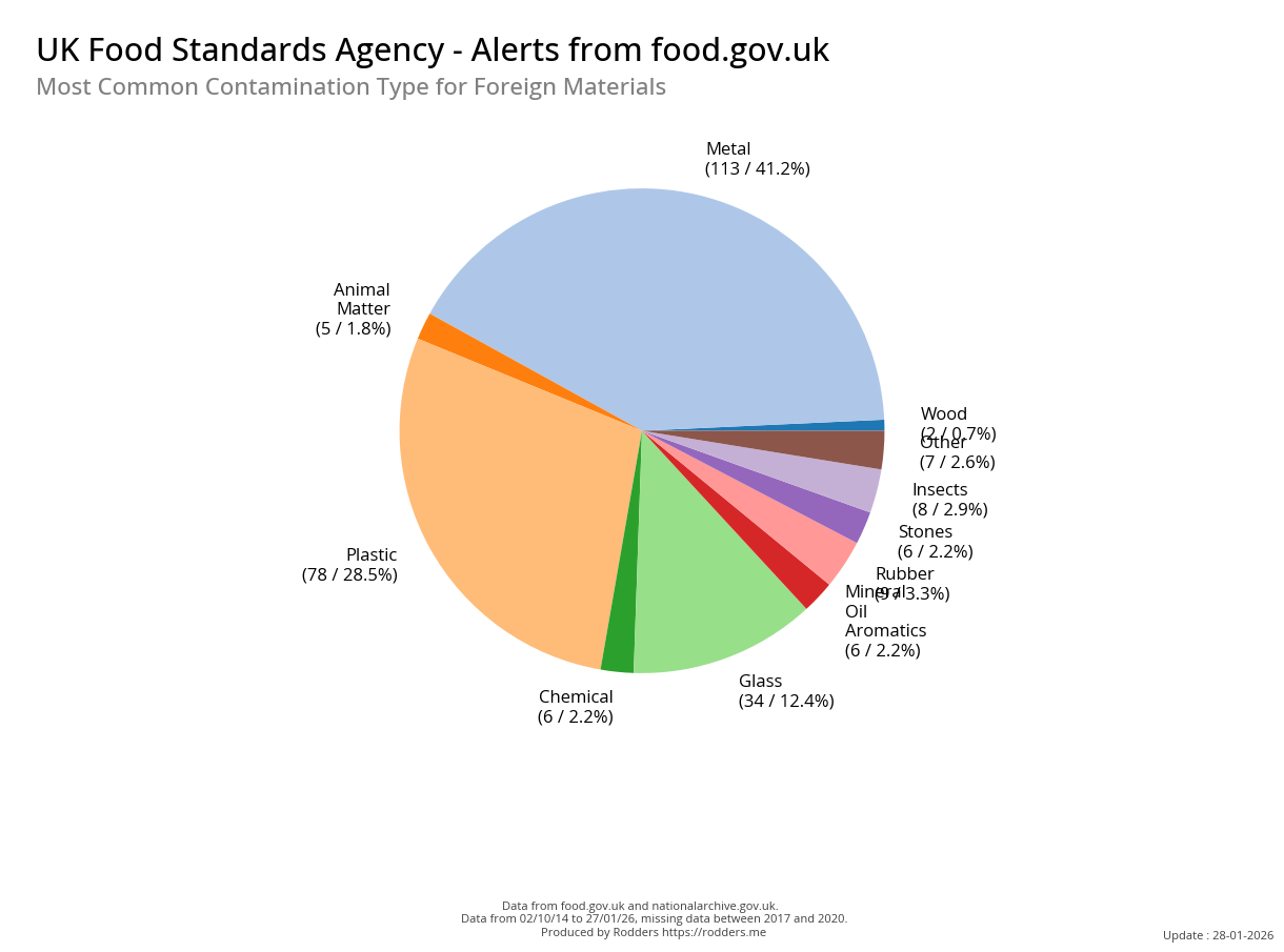Food Standards Agency - Alerts Analysis - Contamination Type : Foreign Material