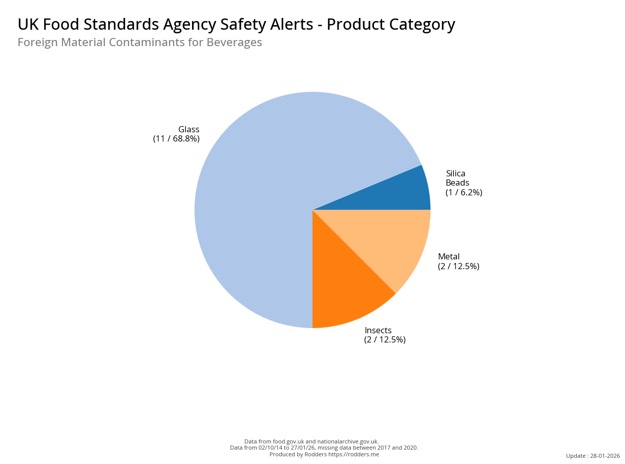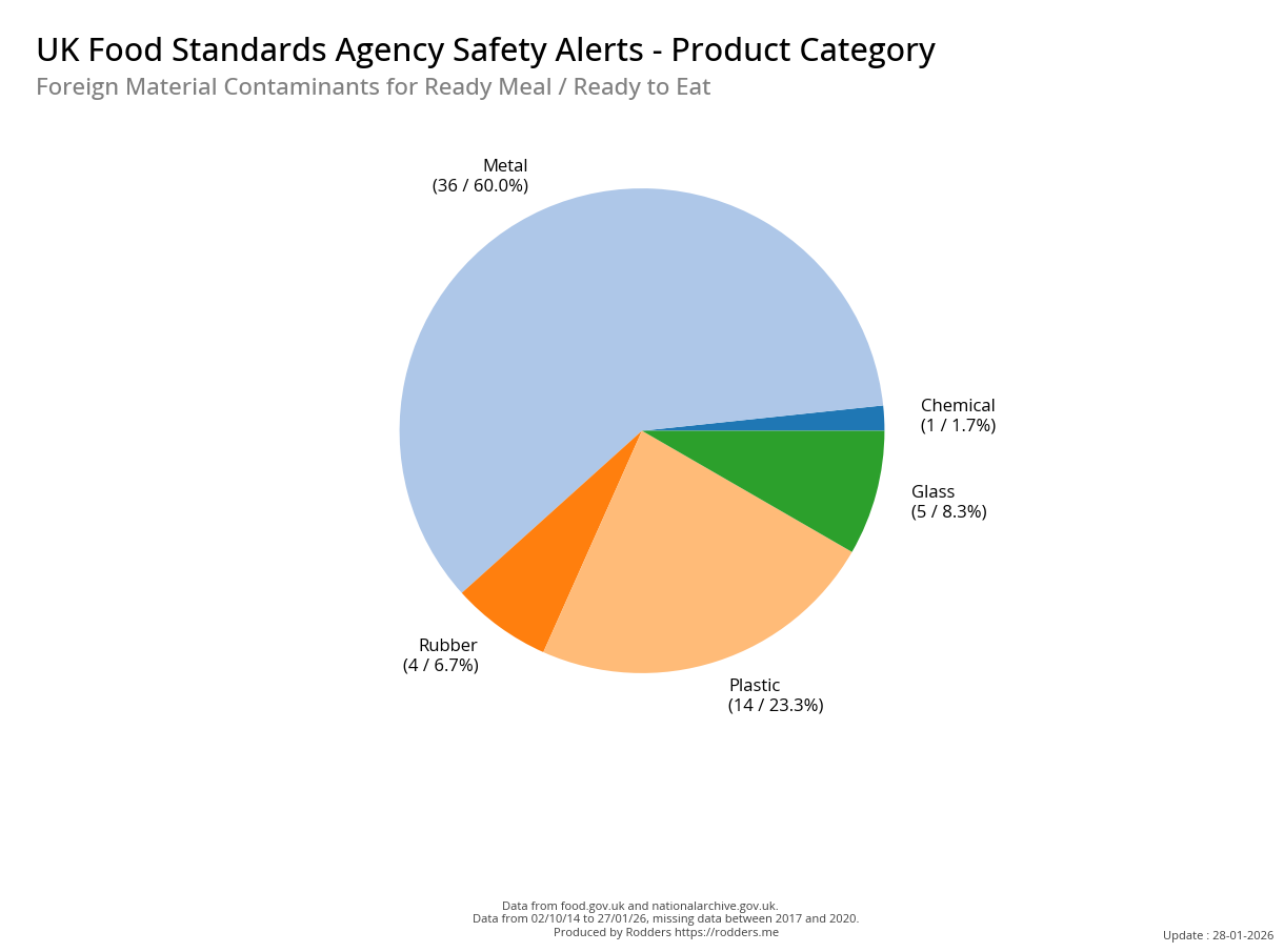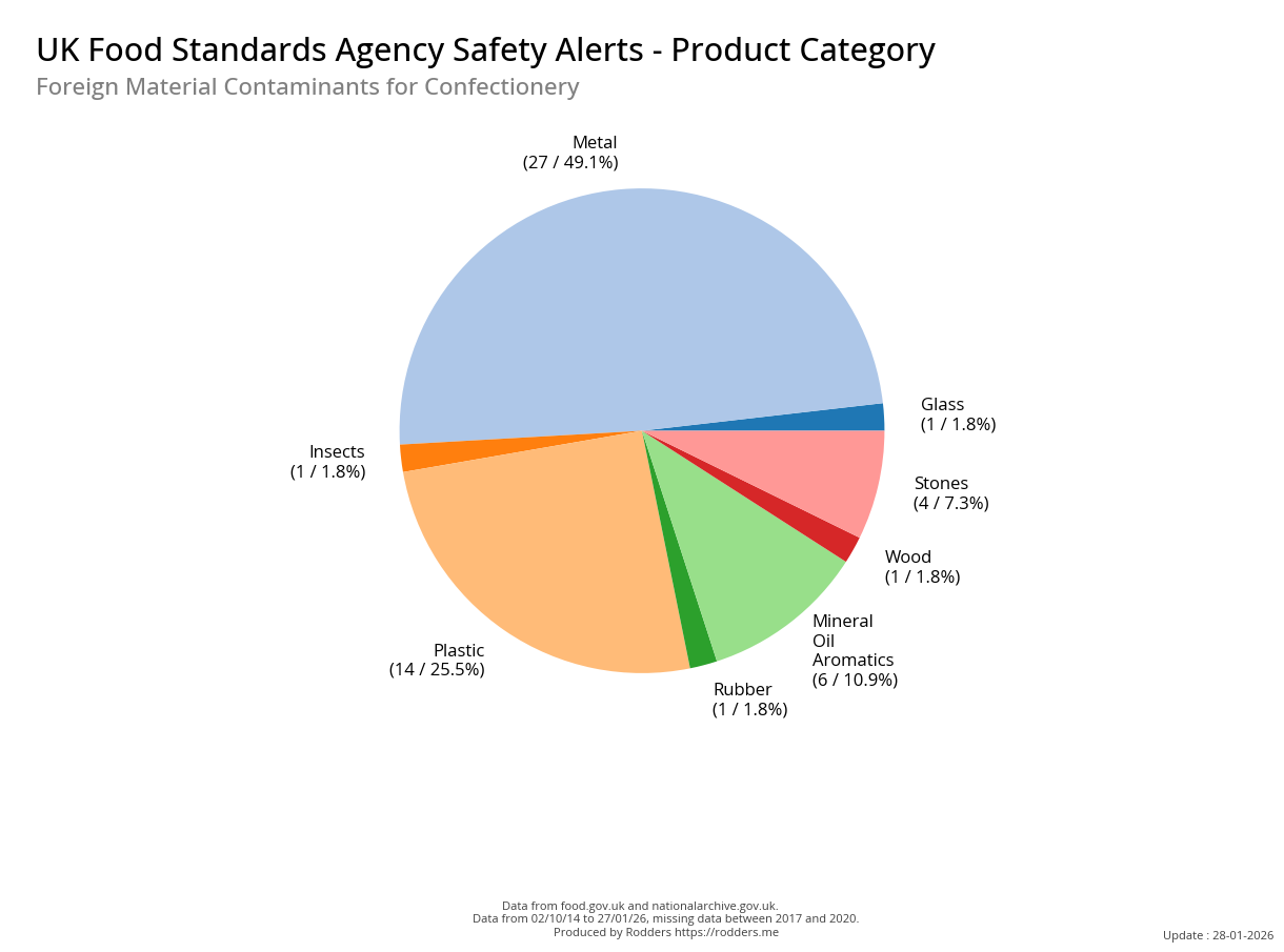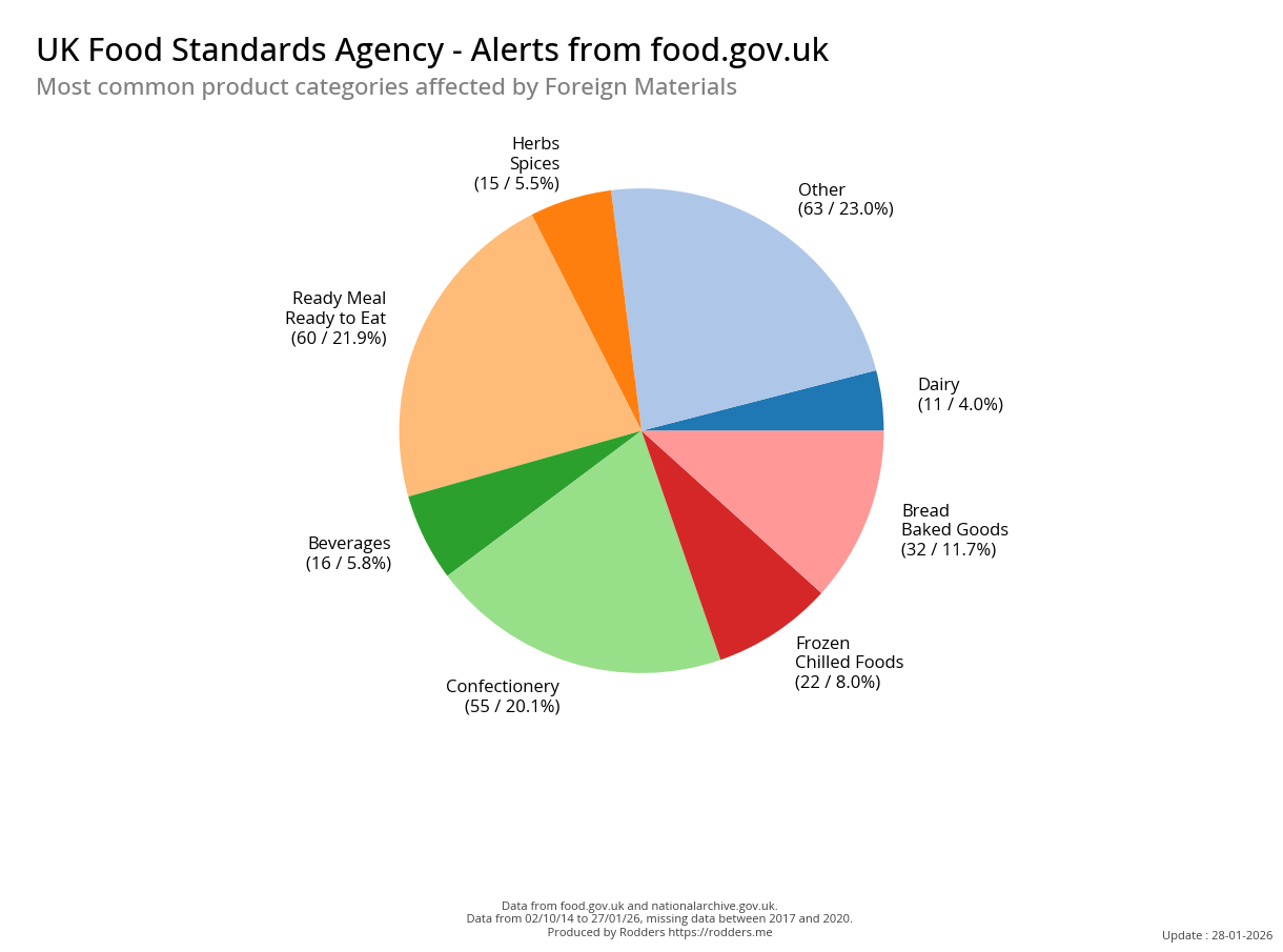 Food Standards Agency - Alerts Analysis - Contamination Type : Foreign Material