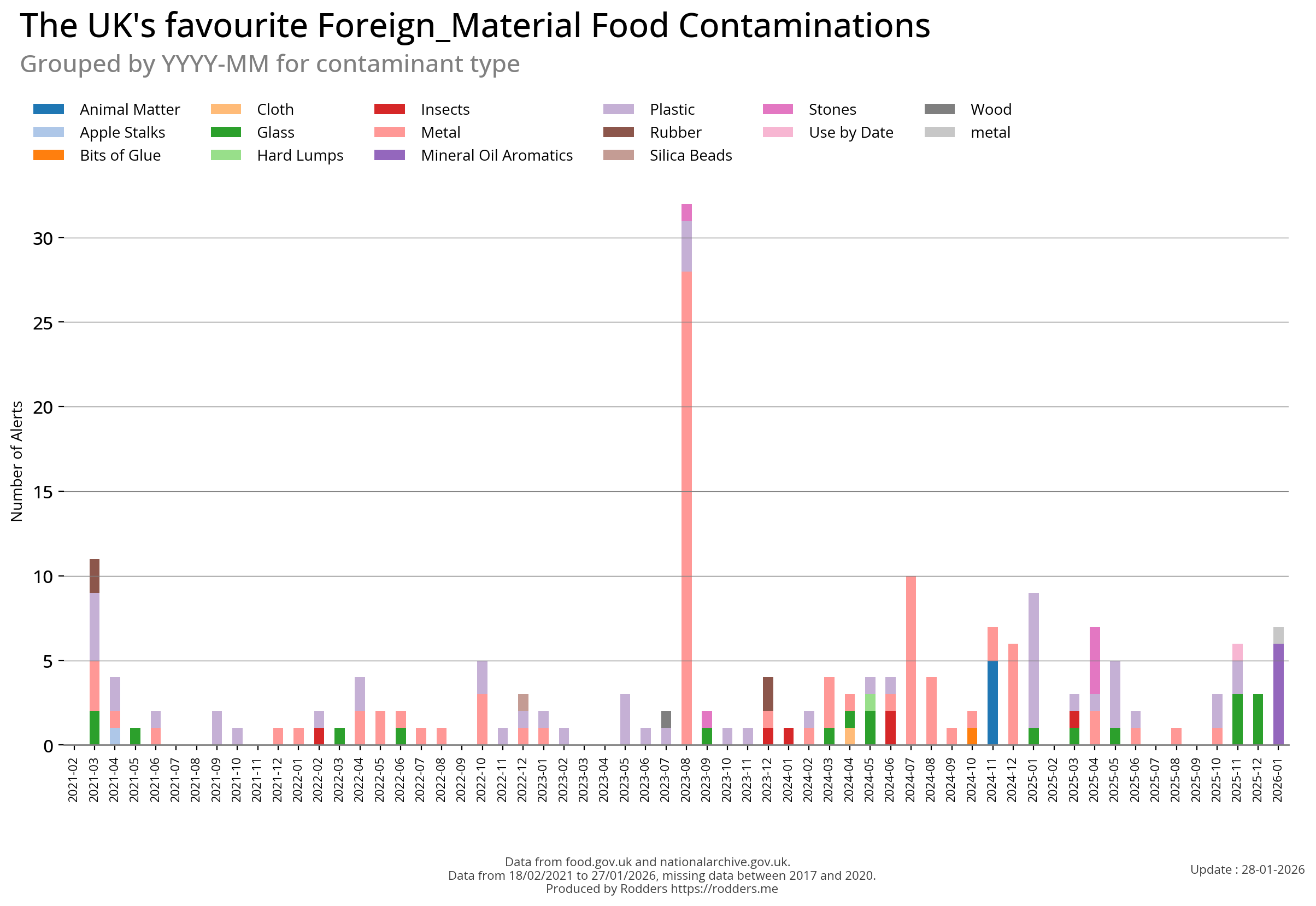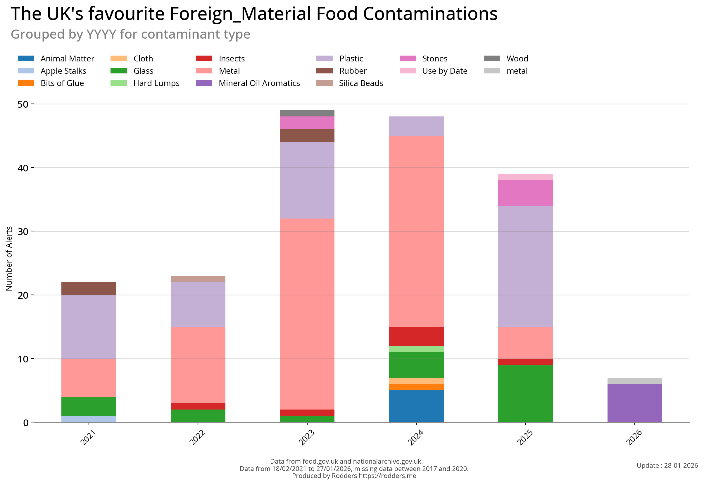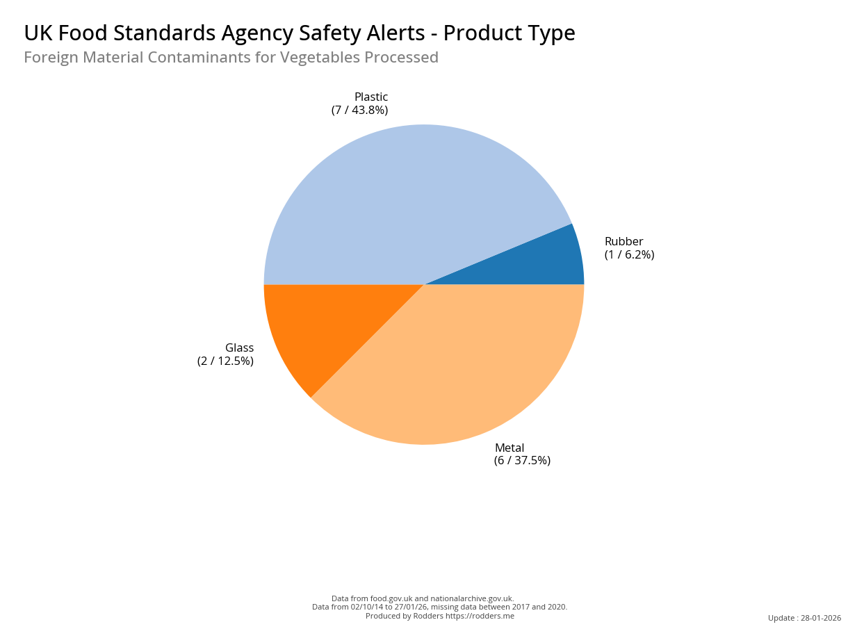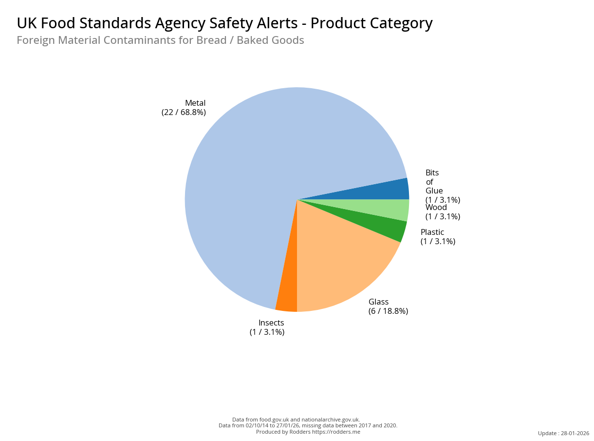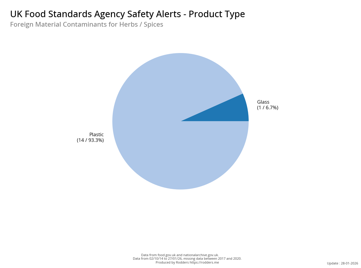 Food Standards Agency - Alerts Analysis - Contamination Type : Foreign Material