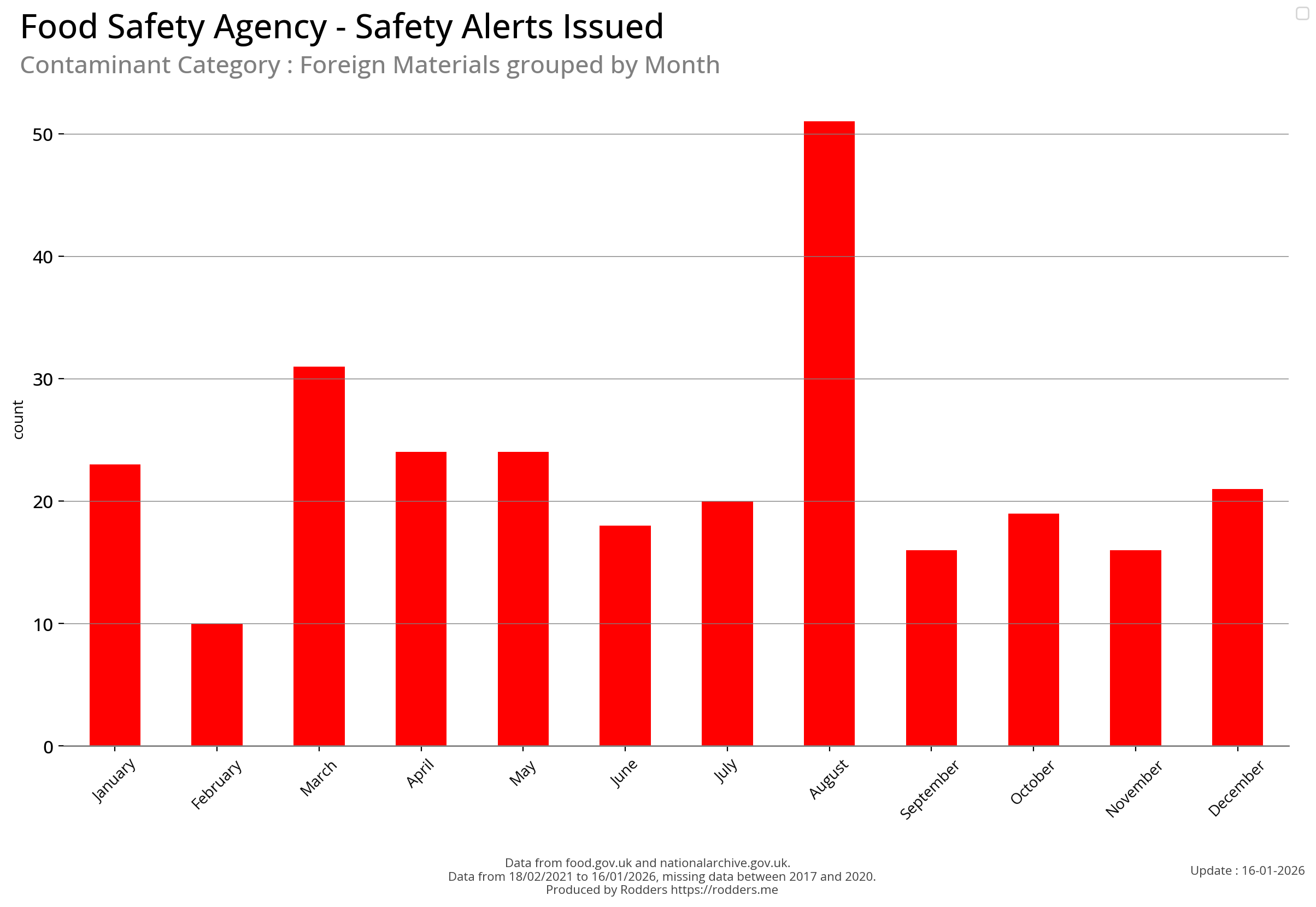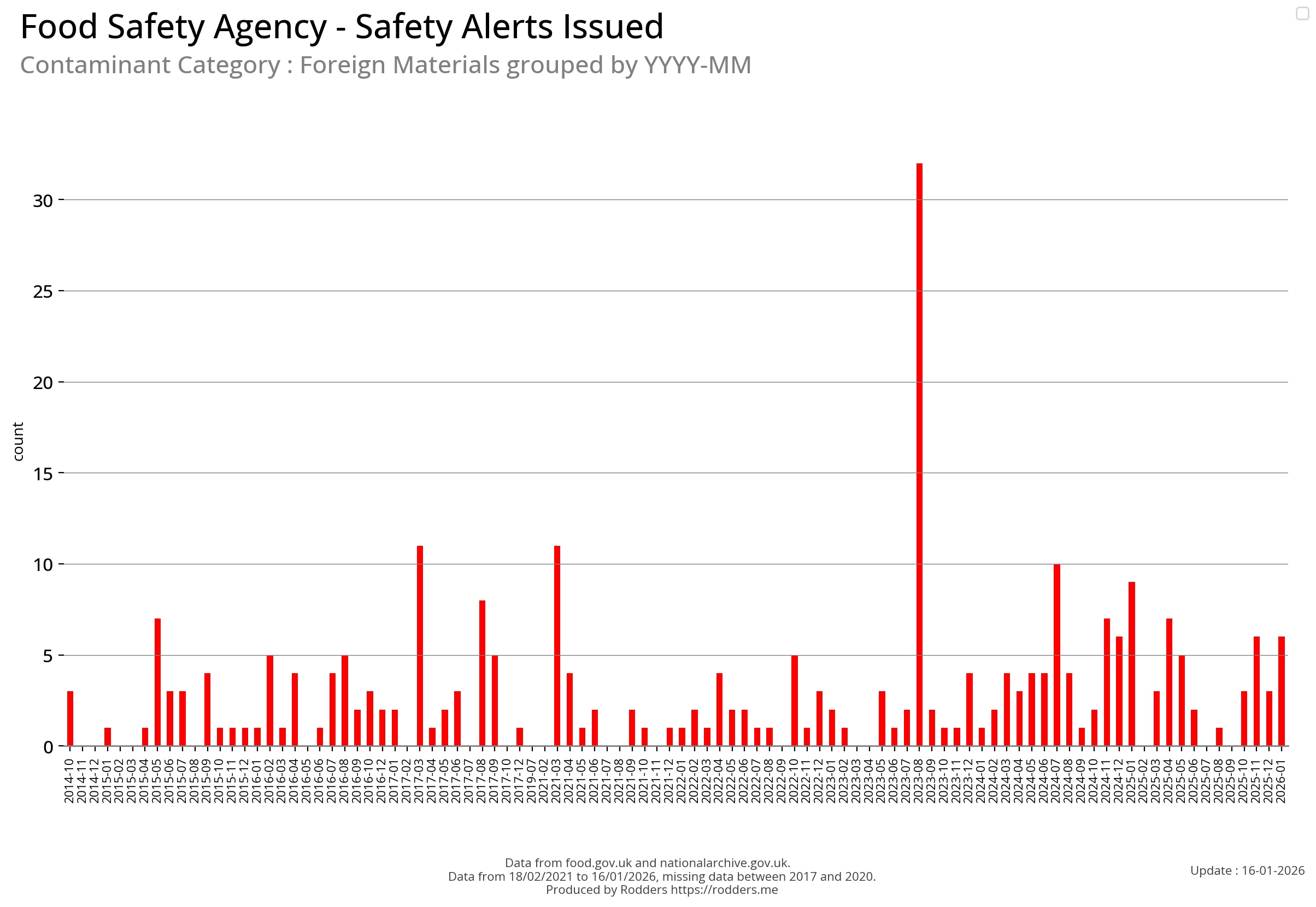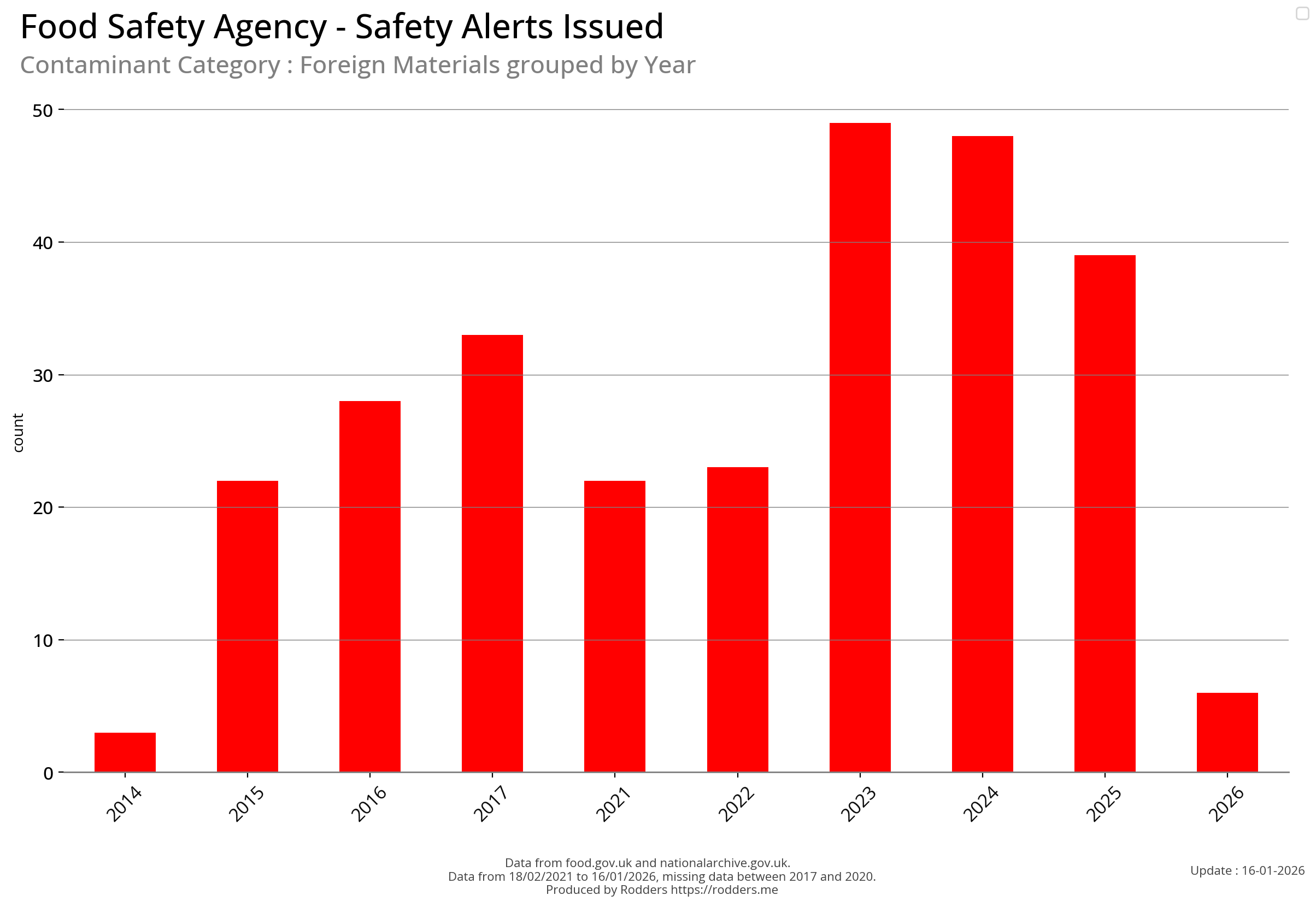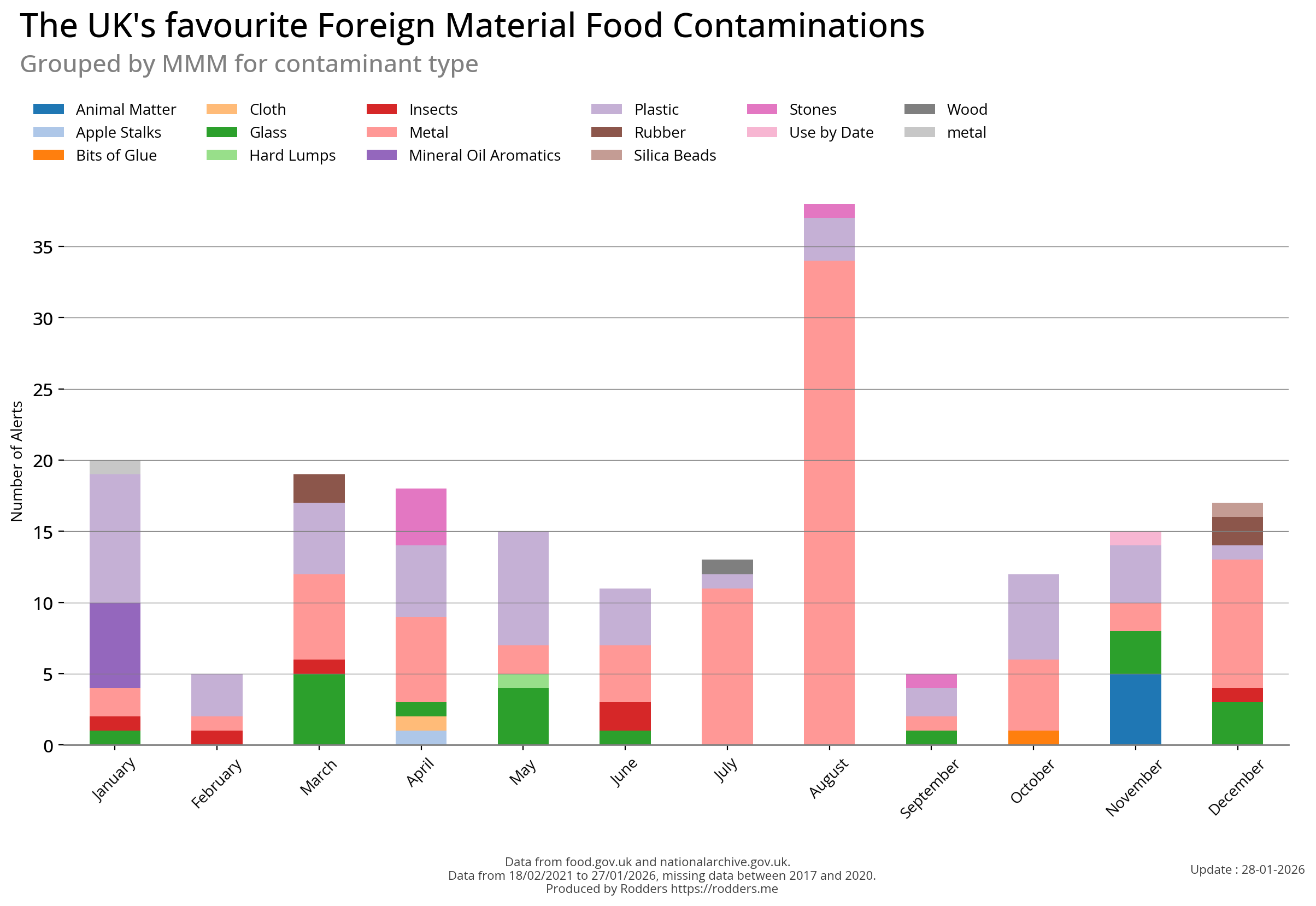 Food Standards Agency - Alerts Analysis - Contamination Type : Foreign Material