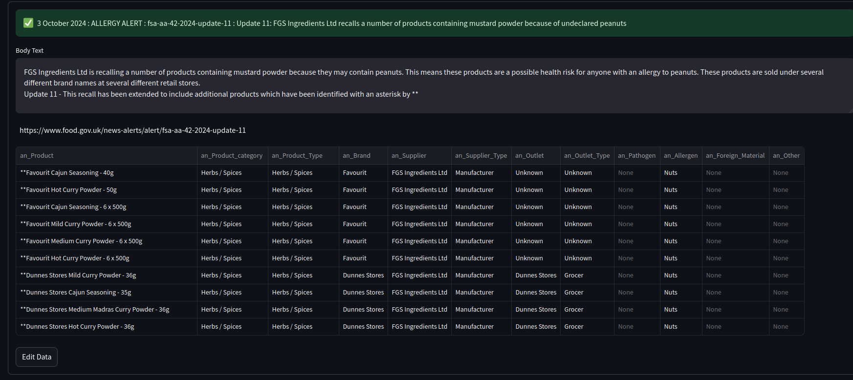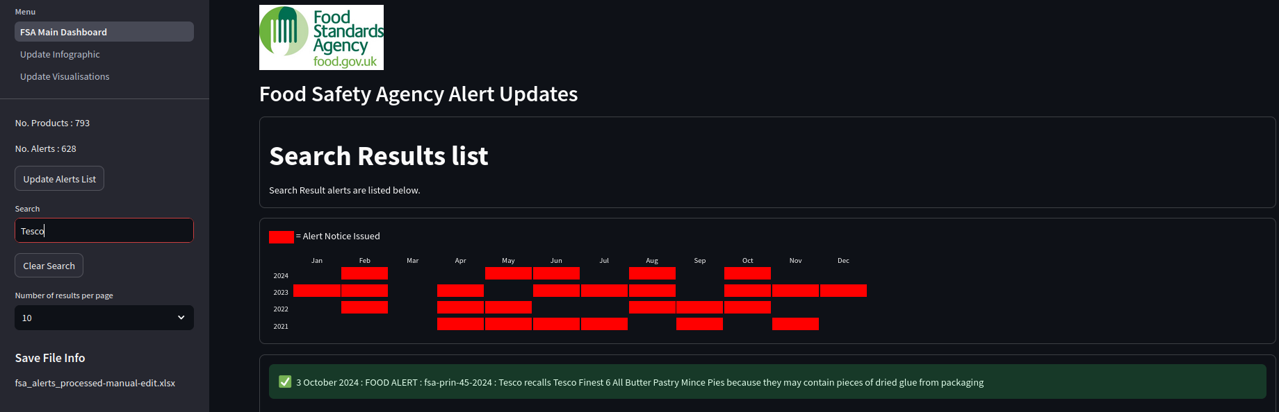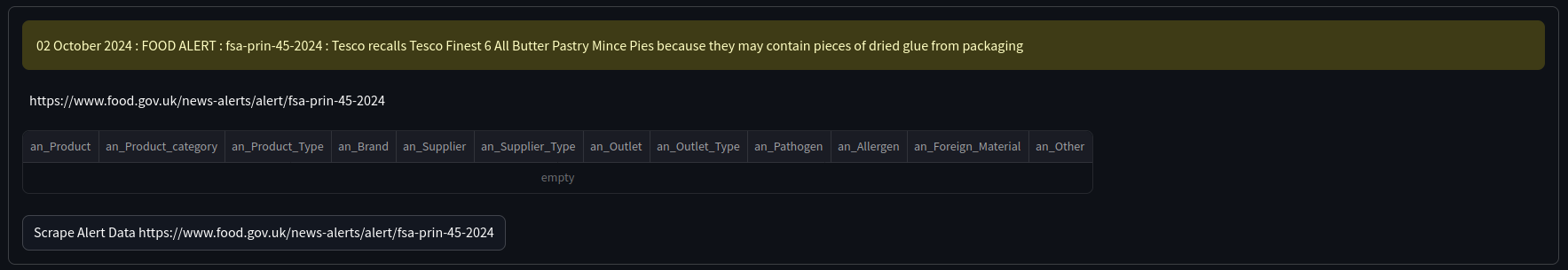 The master list is updated by initiating a fresh scrape of the search results from the food.gov.uk web site. Any new alerts not already in the master